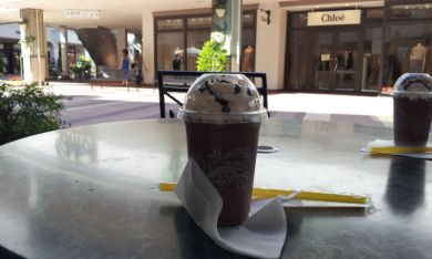 ゴディバのチョコレートドリンク。夏の暑さにみな一息入れようと、長い列が出来ていました。
