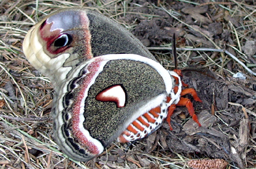 セクロピアという北アメリカに住む蛾は、こんなに美しい羽根と、胴をしていました。